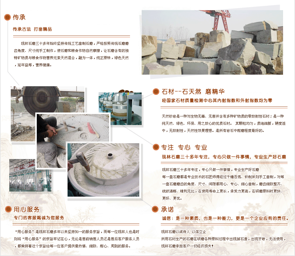• 石磨專家現(xiàn)林石磨告訴你電動石磨機中石磨的優(yōu)勢 • 淺談如何提高電動石磨香油機的出油率 • 現(xiàn)林電動香油石磨機打造健康生活 • 山東現(xiàn)林石磨解析電動石磨面粉機操作流程 • 如何鑒別石磨面粉? • 購買面粉要注意哪些? • 石碾的構成 |